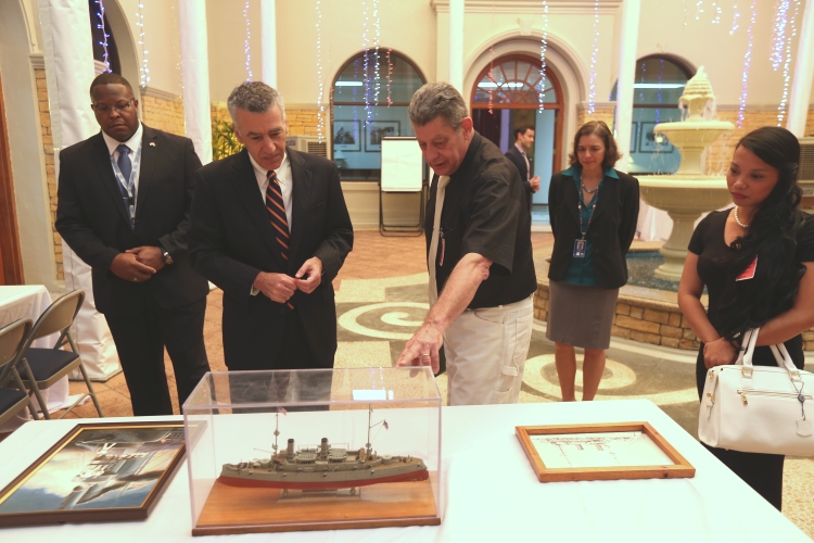 United States Embassy—Manila, Philippines. Donation of USS Olympia/Commodore George Dewey Art Gallery. Special venue and presentation at the Embassy Chancellery with US Ambassador Phillip Goldberg accepting the Gallery. Donation included canvas paintings of Commodore Dewey, two paintings of the Naval Battle of Manila Bay, May 1st 1898, official commissioning photo of USS Olympia (C-6) in 1895 and a 1/240 scale model of USS Olympia (C-6), set on a Philippine mahogany wood stand, and placed in a glass case for permanent display. No media allowed at venue. Received official Embassy Letter of Acceptance.